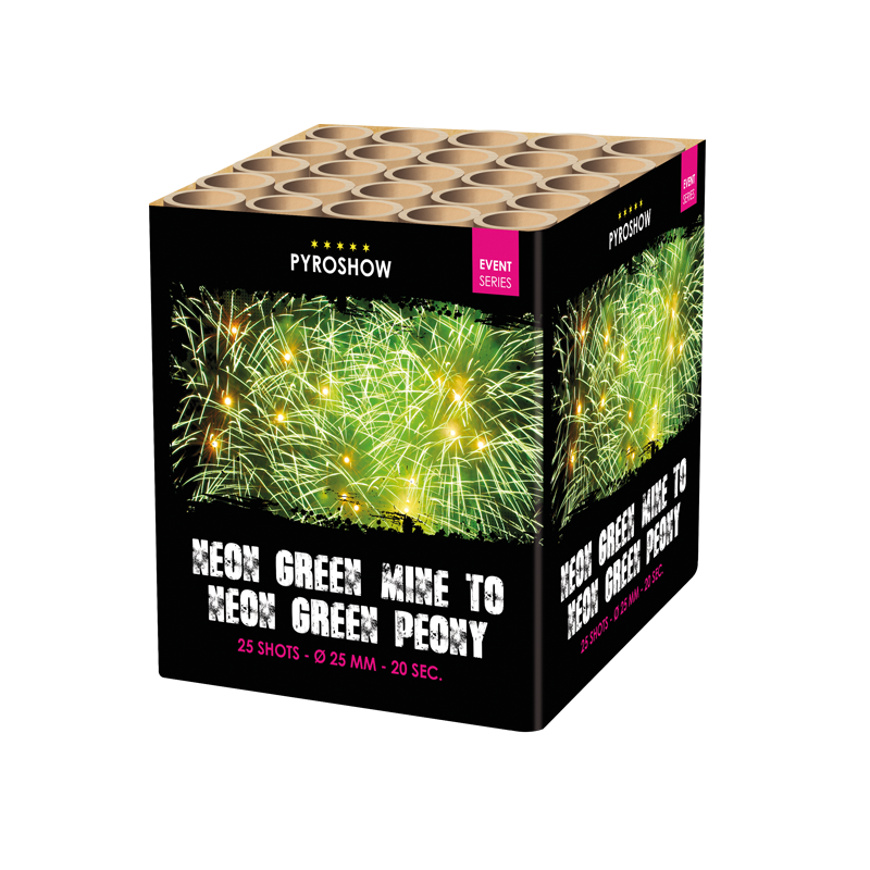 Neon Green Peony w.Green Tail & Mine Goedkoop vuurwerk kopen bij Vuurwerkwinkel Amsterdam