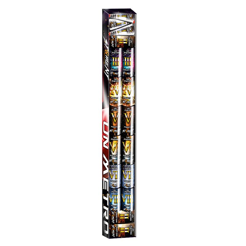Un Metro, eindelijk een meterpakket siervuurwerk in categorie 1. nBomvol met prachtige sierfonteinen. In totaal 18 stuks. 3 stuks conische fonteinen, 3 stuks vierkante fonteinen en 12 ronde fonteinen. 365 dagen per jaar legaal af te steken, ook in een gemeente met vuurwerkverbod. n nProductinformatie: nType product: Jeugdvuurwerk nEffect product: Sierfonteinenpakket nTube diameter: n.v.t. nFanshape: Nee nClassificatie: CAT.F1 nMinimale leeftijd: 12 jaar nLegaal afsteken op: 365 dagen nVeiligheidsafstand: minimaal 1 meter nGeschikt voor smalle straten: Ja nGeschikt in Gemeente vuurwerkverbod: Ja Un Metro meterassortment Goedkoop vuurwerk kopen bij Vuurwerkwinkel Amsterdam